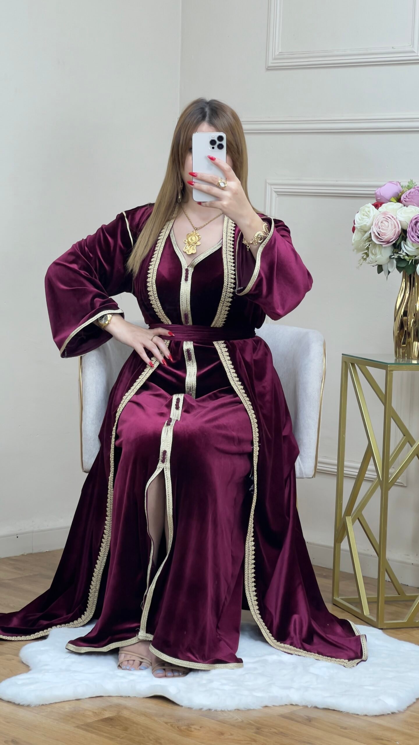 ✨قفطان فاخر بقطعتين و بحزام أنيق✨